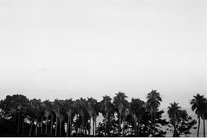 The line of palm trees along the coast of Seogwipo, South Korea.