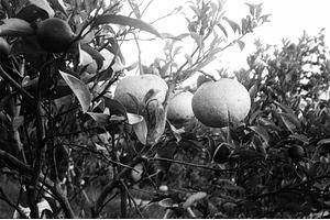 Ripe oranges ready to be picked in Seogwipo, South Korea.