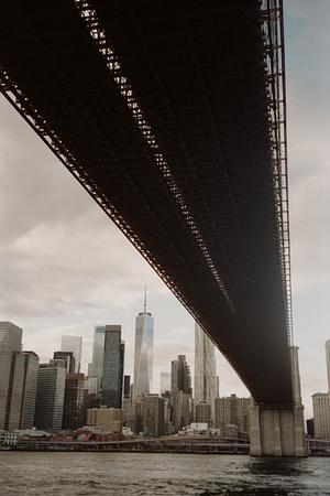Beneath the Brooklyn Bridge, peering into Manhattan.