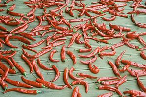 Gochujang peppers drying in the sun in Anyang, South Korea.